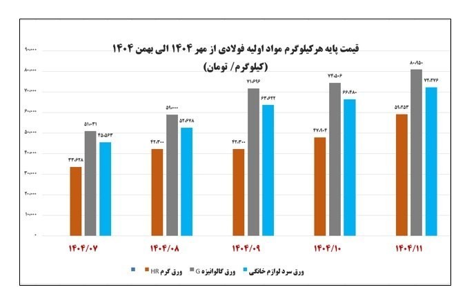 ورق گرم HR در این بازه زمانی حدود ۷۶ درصد افزایش قیمت را تجربه کرده است؛ رشدی که برای یک ماده اولیه صنعتی در مدت فقط شش ماه، جهشی بسیار سنگین و غیرعادی محسوب میشود.